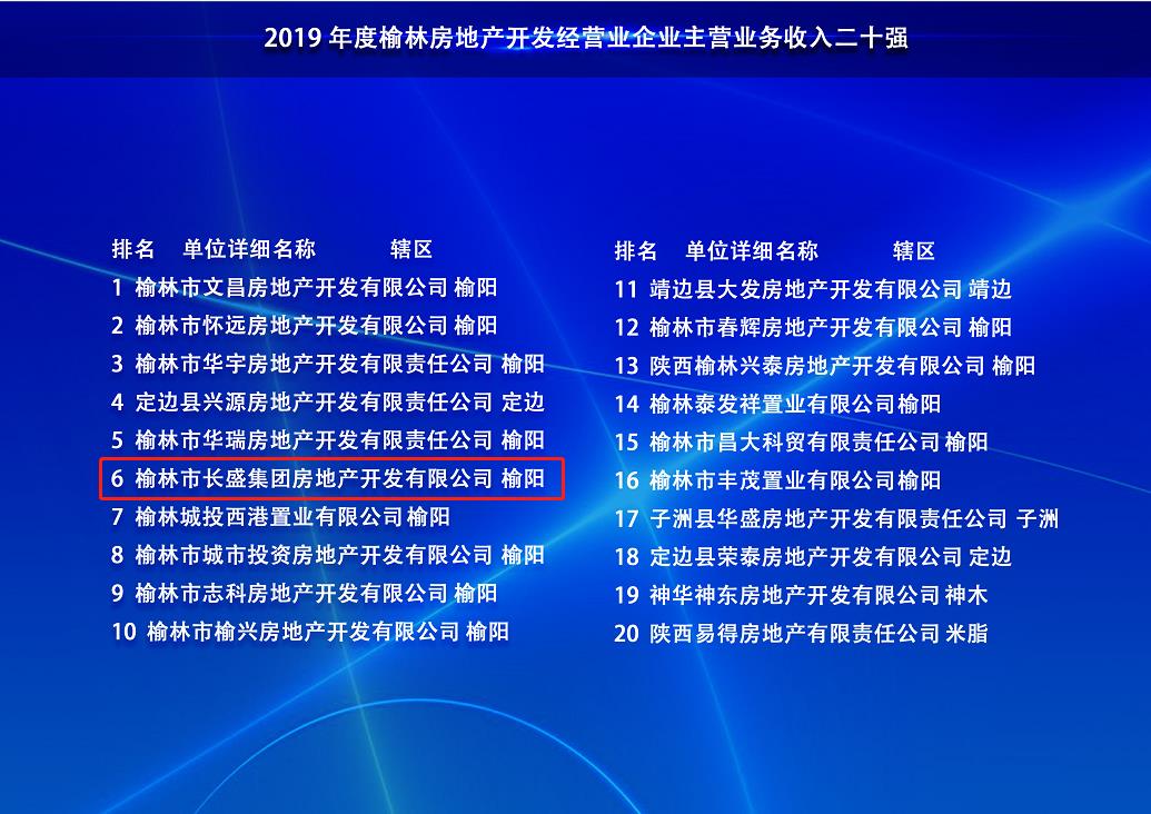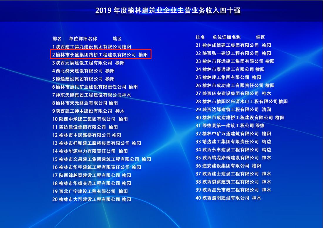 長盛路橋公司入榜榆林市“建筑企業(yè)主營業(yè)務(wù)收入四十強(qiáng)”和“民營企業(yè)主營業(yè)務(wù)收入百強(qiáng)”