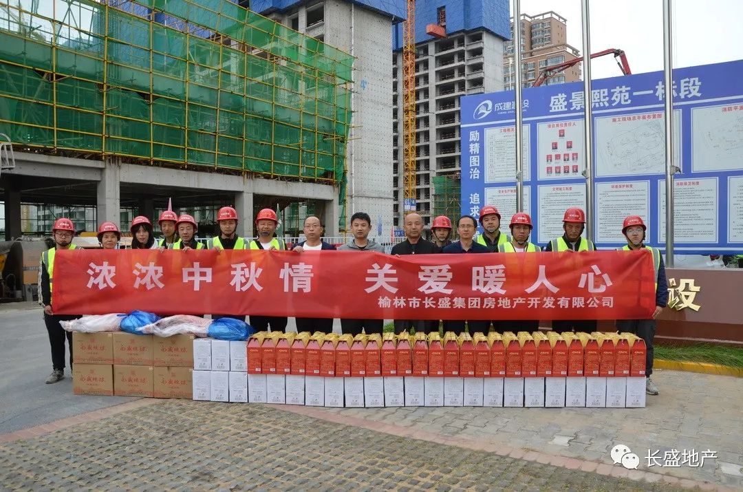 9月20日上午,在中秋佳節(jié)來臨之際,榆林市長盛集團(tuán)房地產(chǎn)開發(fā)有限公司總經(jīng)理徐遼飛帶隊(duì)來到盛景熙苑、盛景馨苑、盛景博苑在建項(xiàng)目現(xiàn)場看望一線員工,將月餅、水果等慰問品送到他們手中。公司副總經(jīng)理劉世斌、總工程師曹光軍、總經(jīng)理助理?xiàng)畋蟮纫恍袇⒓哟舜挝繂柣顒?dòng)。