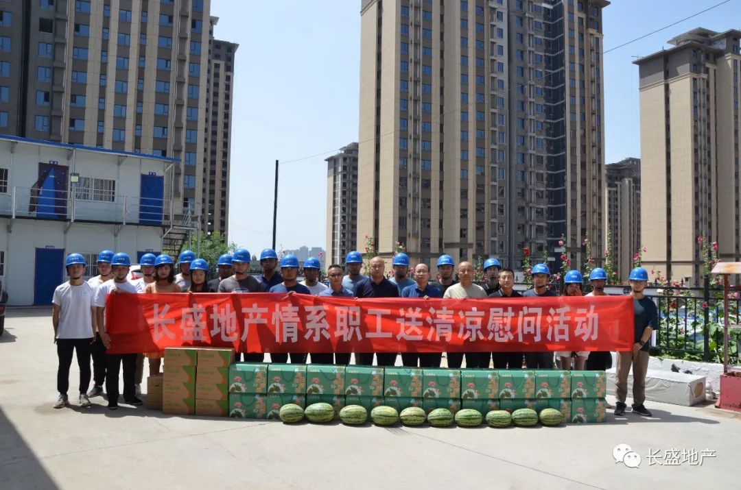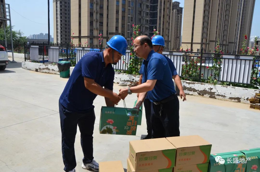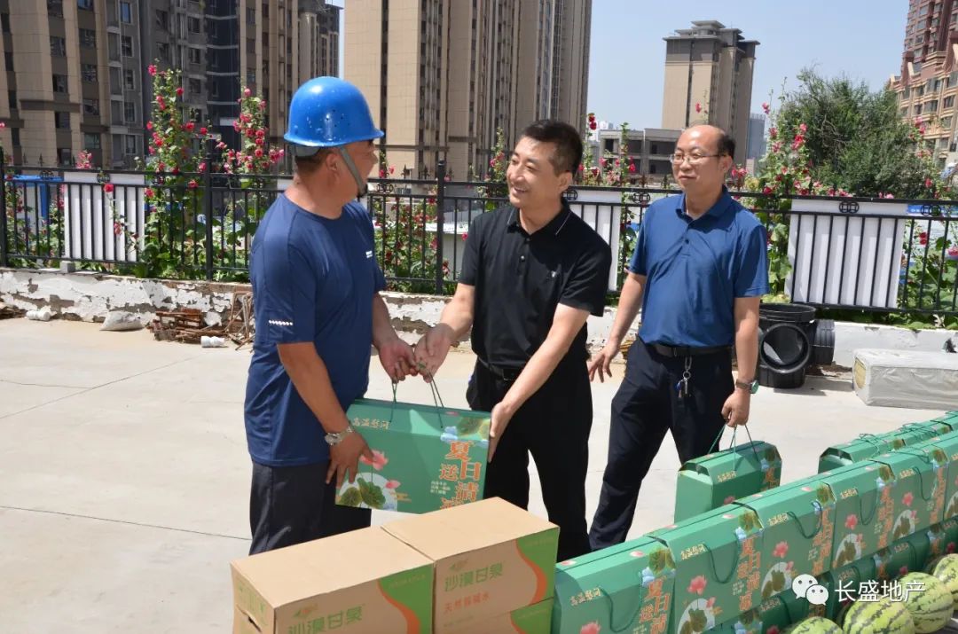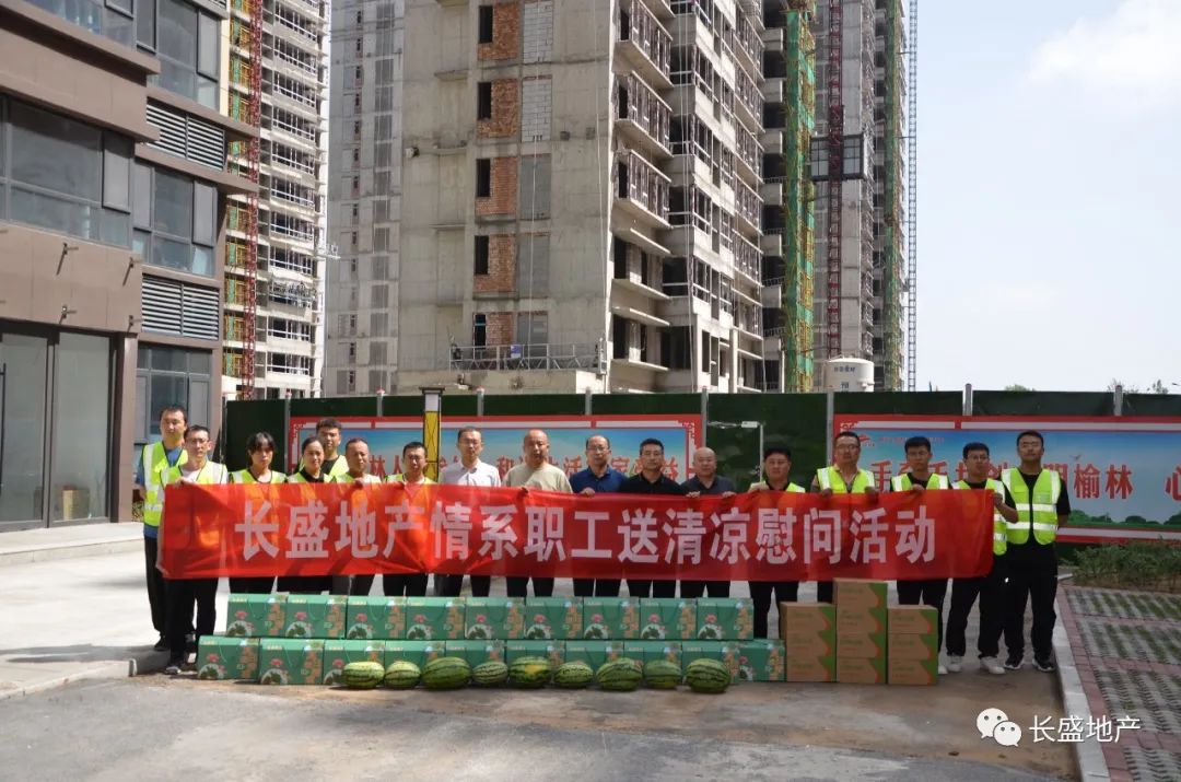 7月13日,榆林市長(zhǎng)盛集團(tuán)房地產(chǎn)開發(fā)有限公司開展2022年度“情系職工送清涼”慰問活動(dòng),看望慰問榆林區(qū)內(nèi)在建項(xiàng)目一線員工,為他們送去小米、綠豆、白糖、西瓜等防暑降溫物品。