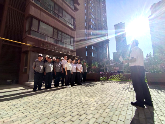 此次演練模擬了突發(fā)情況導(dǎo)致電梯故障,多名乘客被困,由1號(hào)樓3單元503業(yè)主文強(qiáng)、盛景雅苑物業(yè)服務(wù)中心綜合辦公室人員、客服人員、工程人員和安保人員聯(lián)合通力電梯維保公司人員在4號(hào)樓西梯進(jìn)行。演練開(kāi)始前,總指揮——項(xiàng)目經(jīng)理謝云云對(duì)本次演練進(jìn)行了總體部署。