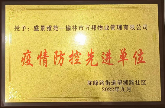 喜訊丨萬(wàn)邦物業(yè)-盛景雅苑項(xiàng)目被評(píng)為“疫情防控先進(jìn)單位”