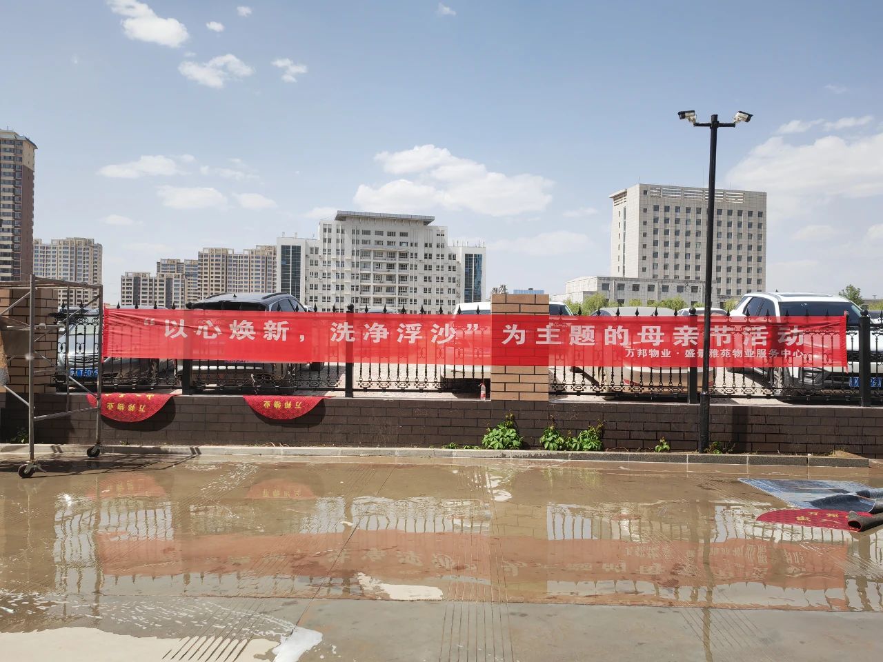 2023年5月14日借母親節(jié)之日,萬邦物業(yè)·盛景雅苑物業(yè)服務(wù)中心在小區(qū)4號樓北側(cè)開展“以心煥新,洗凈浮沙”為主題的母親節(jié)活動(dòng)——解放媽媽的雙手, 免費(fèi)為小區(qū)業(yè)主家人們清洗地墊。