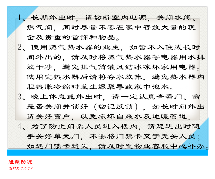 安全小常識——防凍、防盜