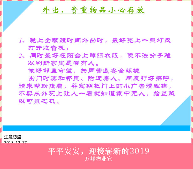 共同做好防火、防盜、防凍的安全預防工作!