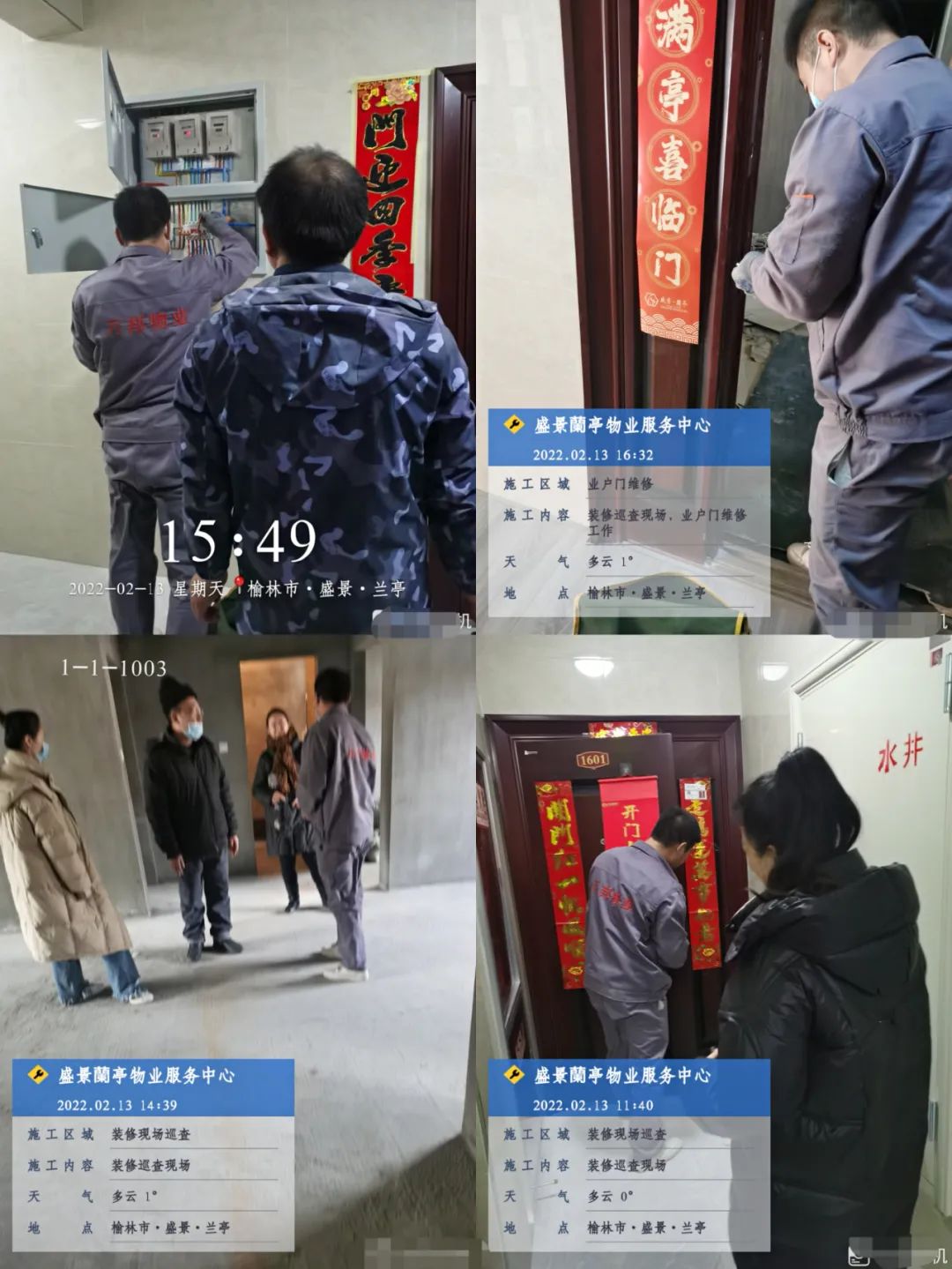二月萬(wàn)物復(fù)蘇,二月鳥(niǎo)語(yǔ)花香,二月生機(jī)盎然, 這個(gè)二月,我們始終以誠(chéng)相待,用心服務(wù)!在園區(qū)裝修期間,盛景蘭亭服務(wù)中心成立了由工程部、客服部、環(huán)境部、安保部多部門(mén)人員組成的裝修特巡隊(duì),集中對(duì)樓棟裝修情況進(jìn)行巡查、管控,整個(gè)小區(qū)裝修工作井然有序。