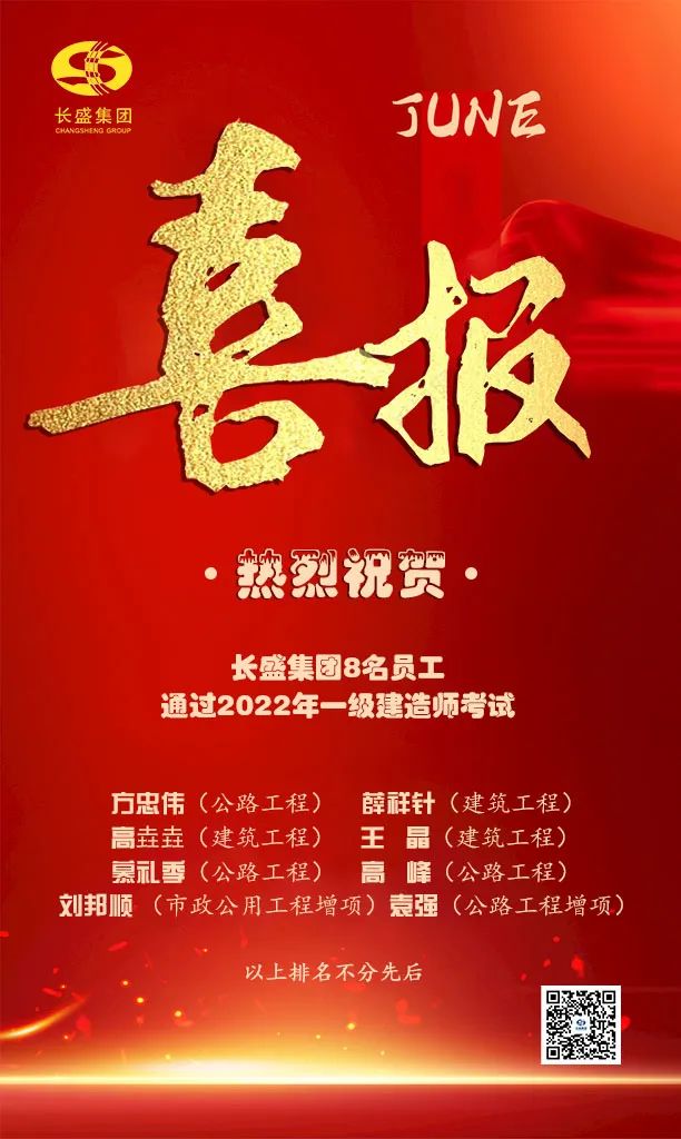 喜報!長盛集團8名員工通過2022年一級建造師考試